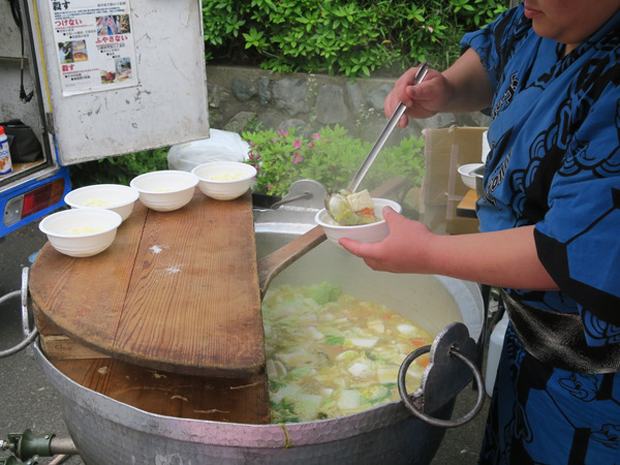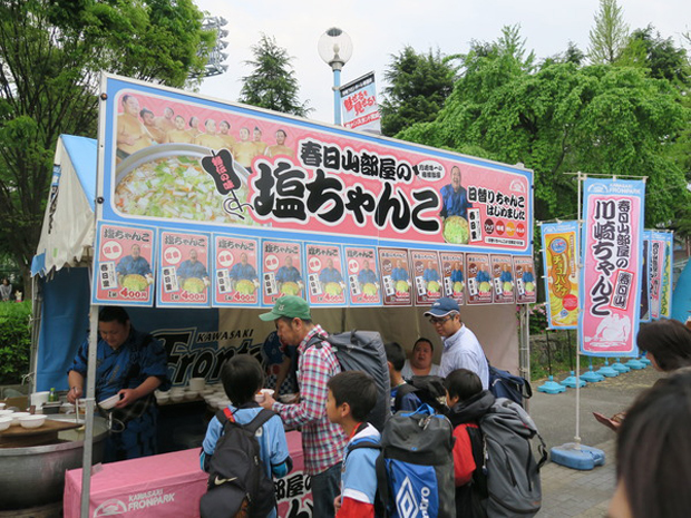 それもそのはず、川崎で唯一の相撲部屋・春日山部屋の力士が大鍋でちゃんこを作り…