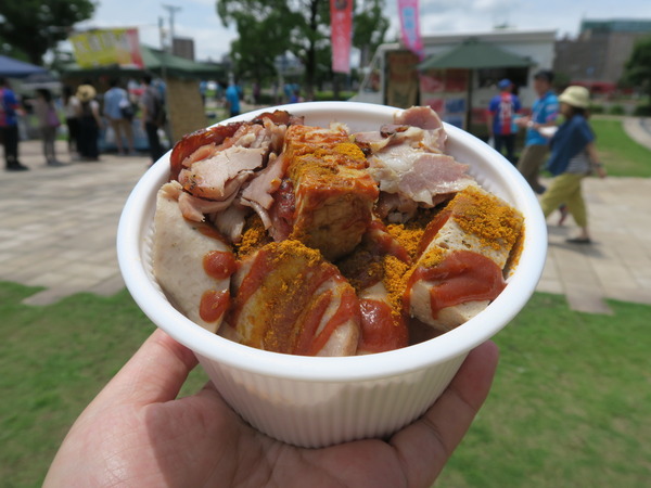 プリプリなソーセージや、ポテサラ入りのちくわ、佐賀牛入りの肉まんにカブりつき…