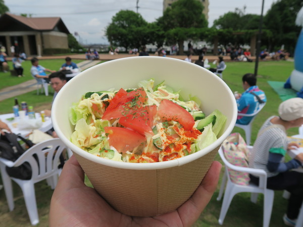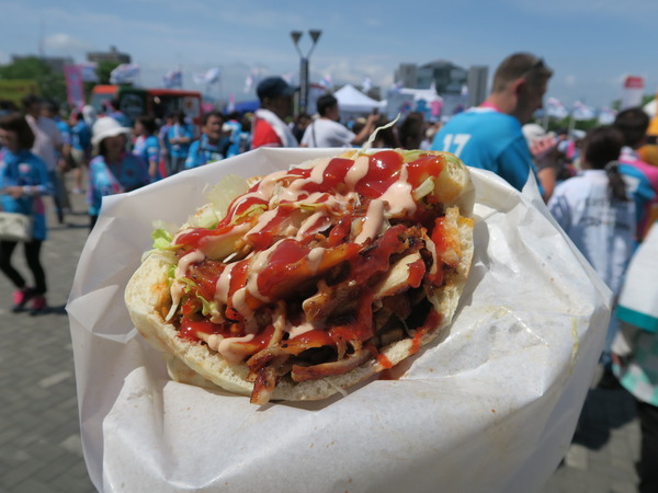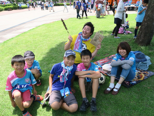 炎天下で、まだサッカーの試合前なのに、自分たちだけ試合をしているように食べ続け…