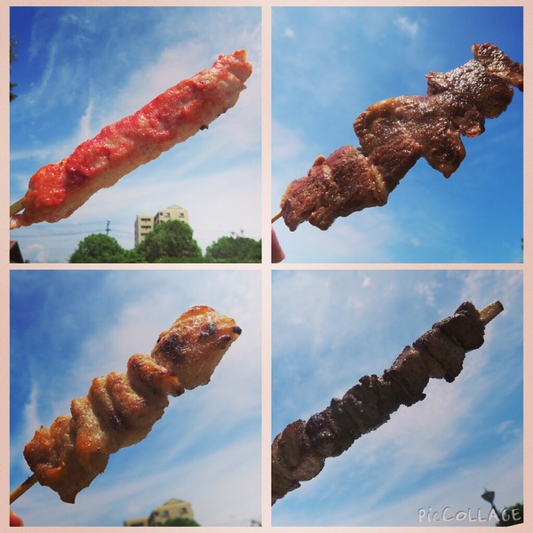そしてこれら以外にも、晴れわたった青空に向かって、肉々しい串にカブりつきながら…