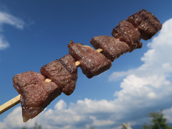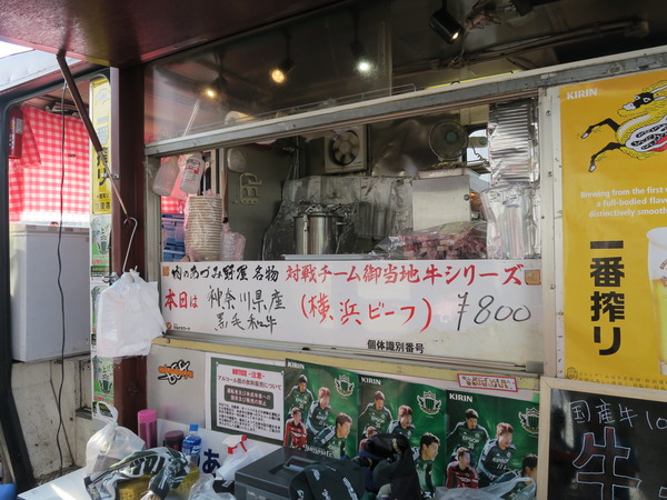 名物のご当地牛串もあって、この日は川崎フロンターレだったので、神奈川産の牛肉!