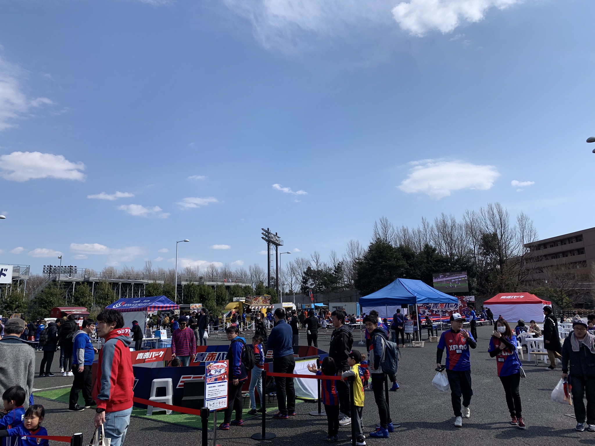日曜日、今日も天気が良いので自転車で味の素スタジアムに向かう。人見街道から味スタまでの通りでは、子供たちがサッカーをしている。