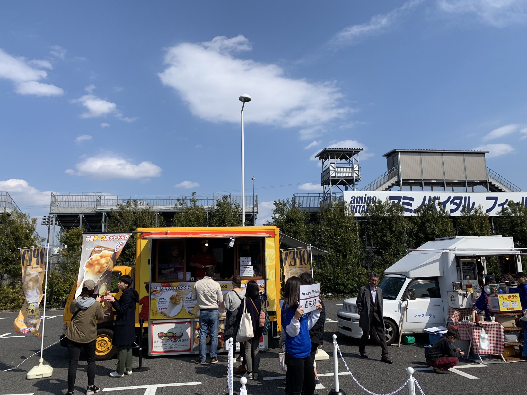 試合前に「青赤パーク」へ足を運ぶ。韓国風のチーズドッグが人気のようだ。