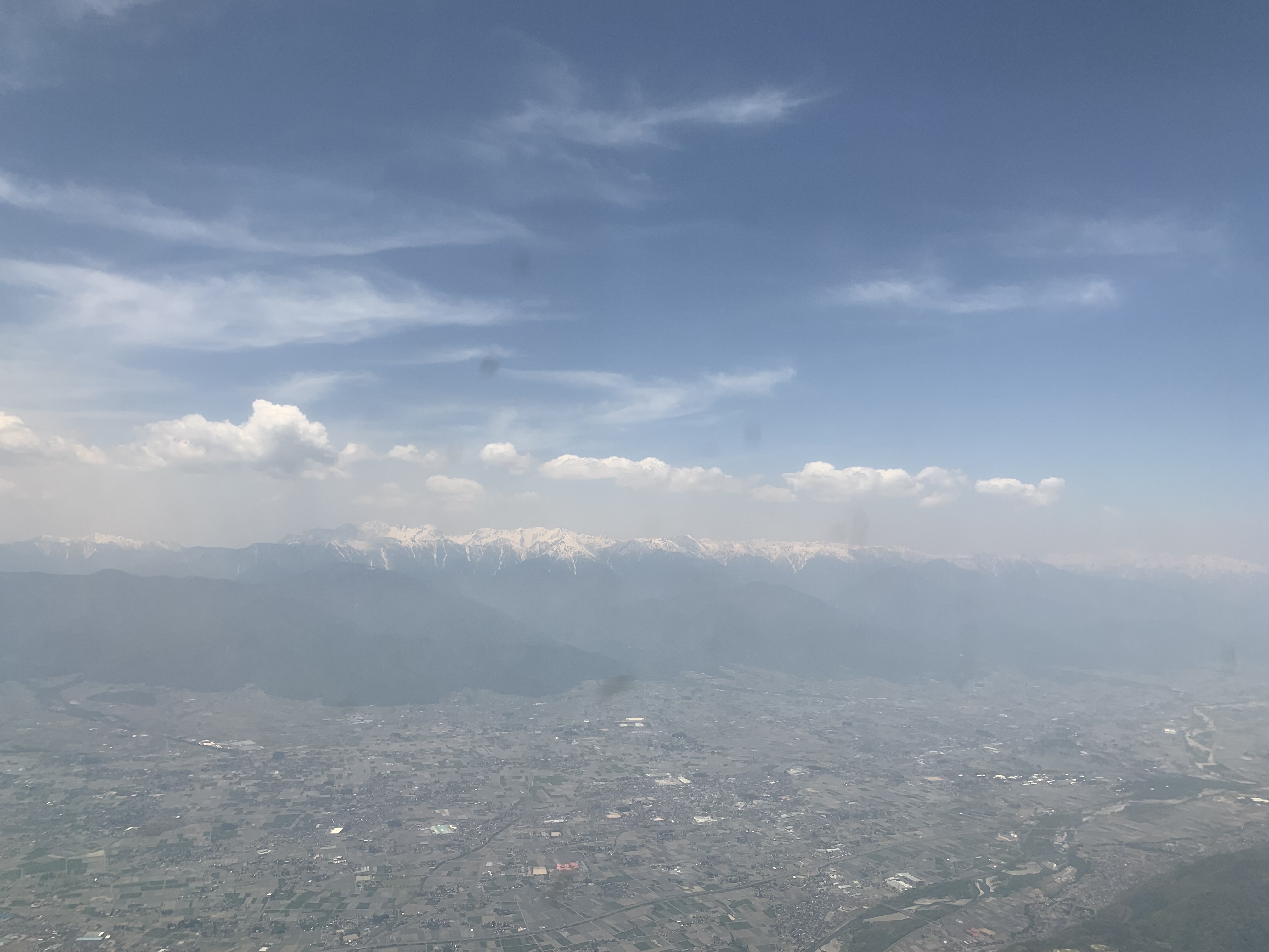 12日は、前日視察した山口から松本に移動する。新山口駅から博多駅、そして福岡空港へ。福岡空港から松本空港には1日2便が飛んでいる。サンプロ アルウィンは松本空港のすぐ隣で空路移動は非常に便利。瀬戸内海、関空を通って松本へ。