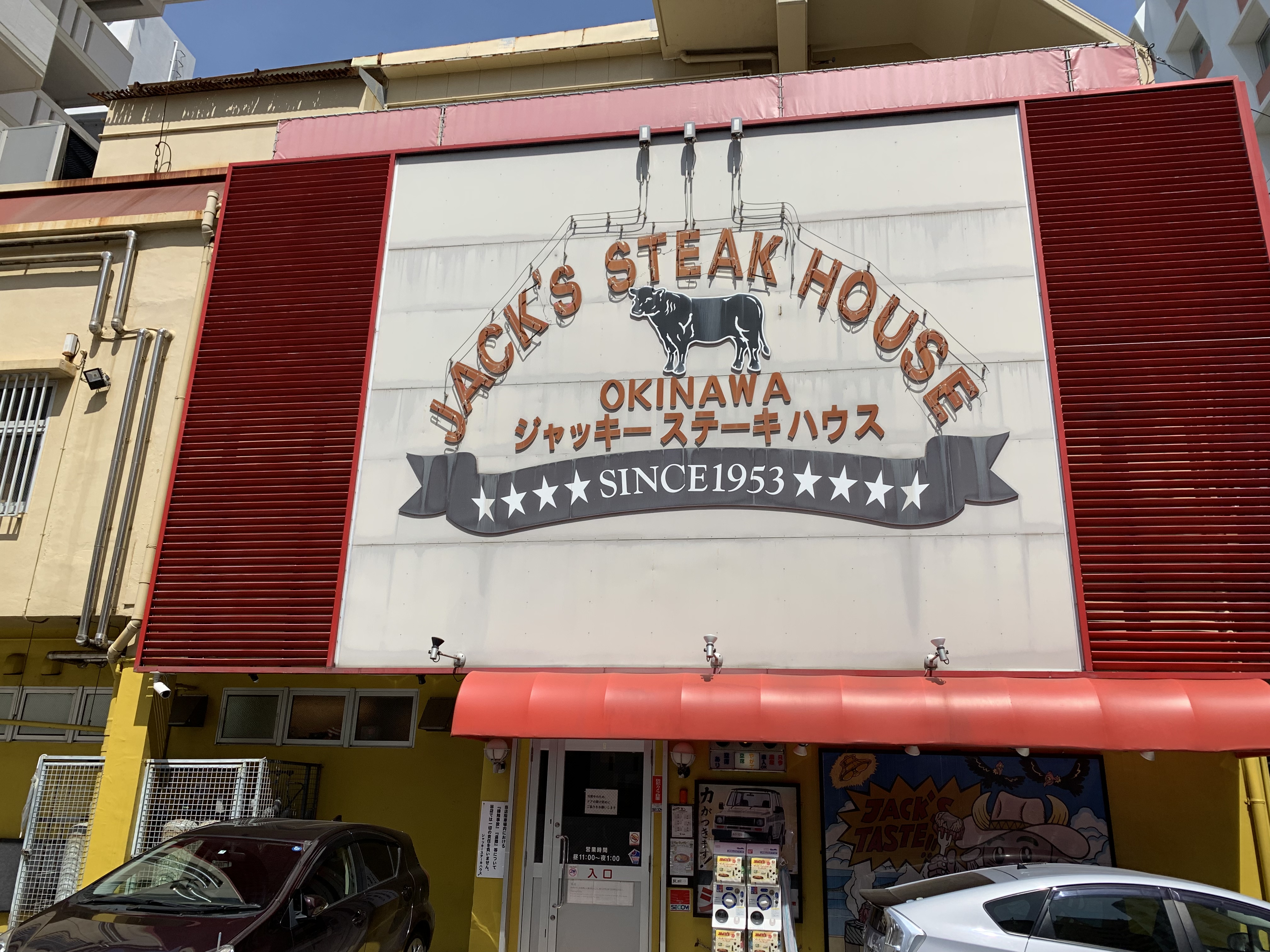 昼食のために沖縄出身のJリーグ職員のオススメ、「ジャッキーステーキハウス」に向かった。