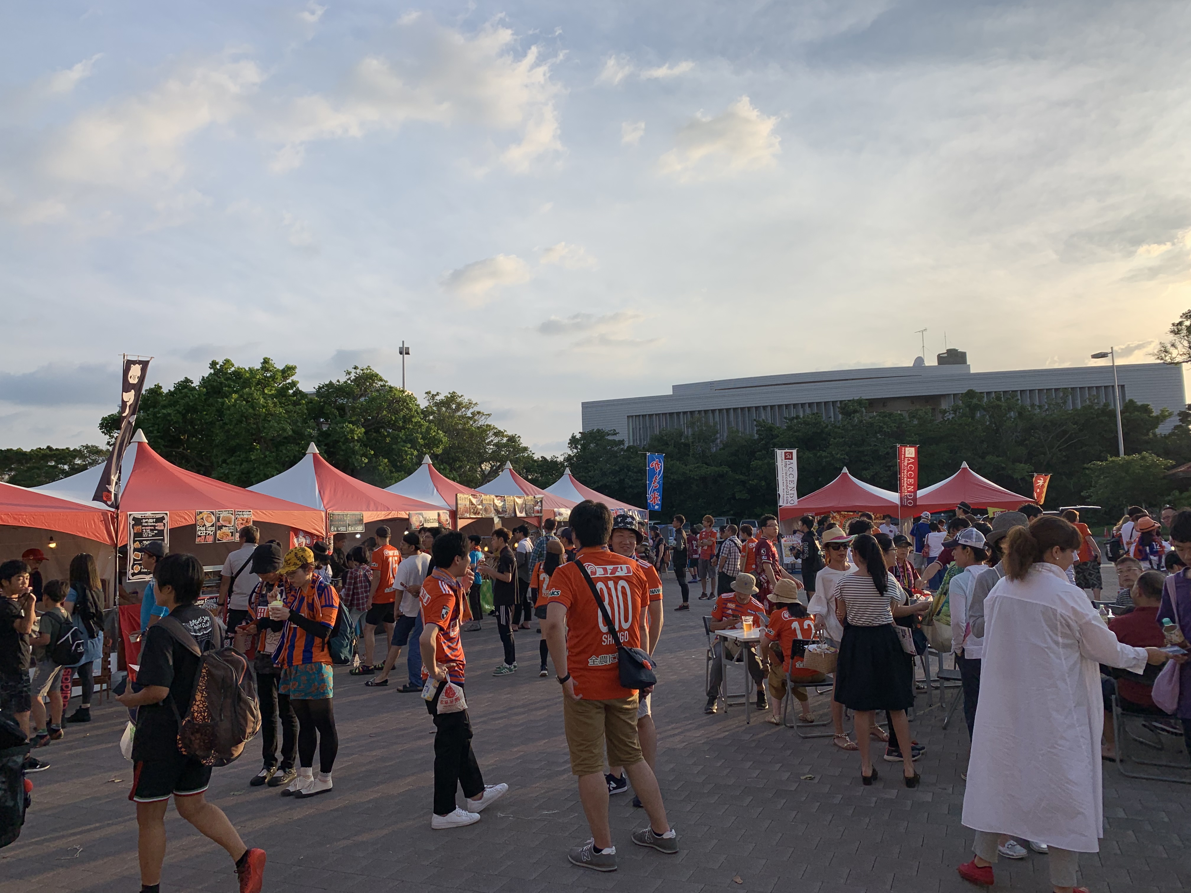 ホテルで昼の試合をDAZNで観戦する。間違いなく日本全国どこも暑い。むしろ那覇のほうが爽やかで気持ち良い天候かもしれない。この日の視察試合はナイトゲーム。頃合いを見てタピック県総ひやごんスタジアムへ向かった。