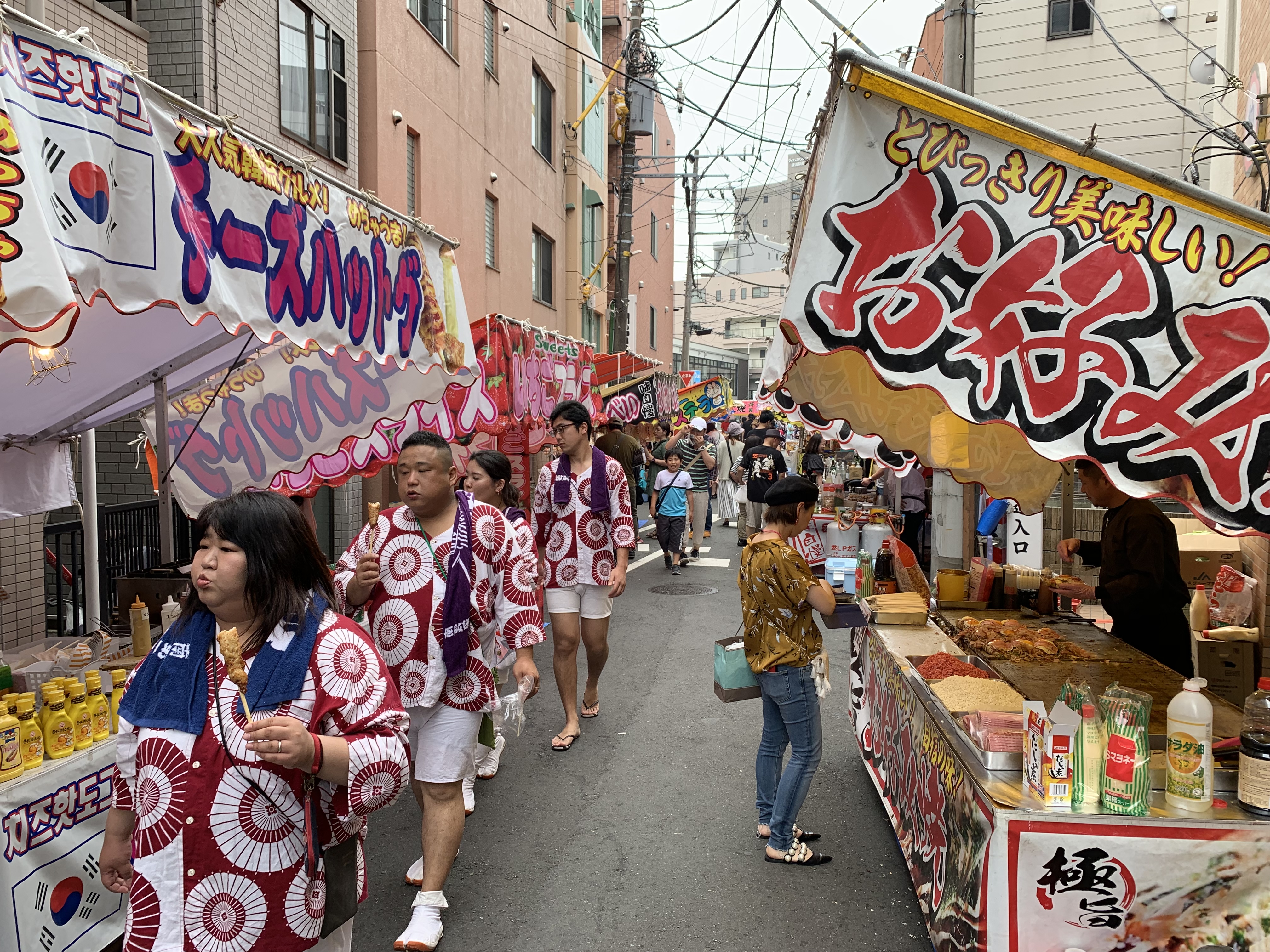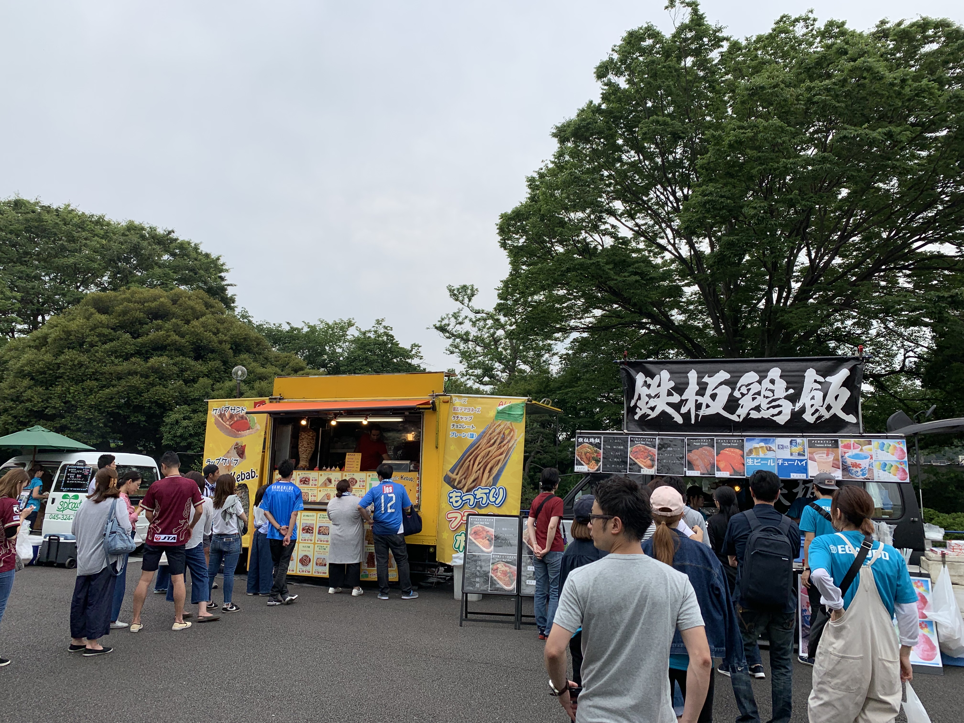 外に出てニッパツ三ツ沢球技場方面に向かうと何かお祭りをやっている。屋台もたくさん出ていた。