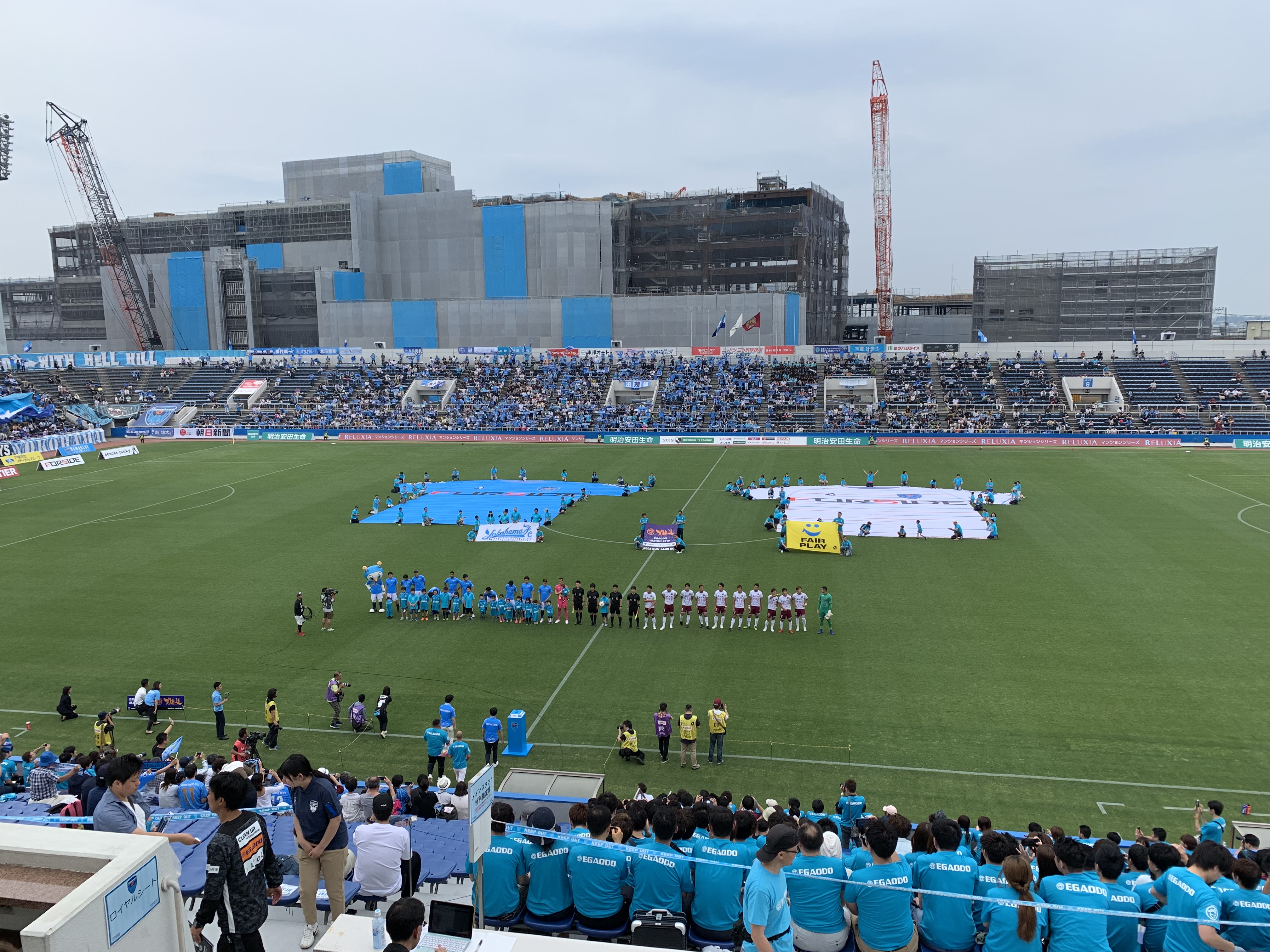 バックスタンドの向こうには来年開院する予定の横浜市立市民病院が建設中だ。