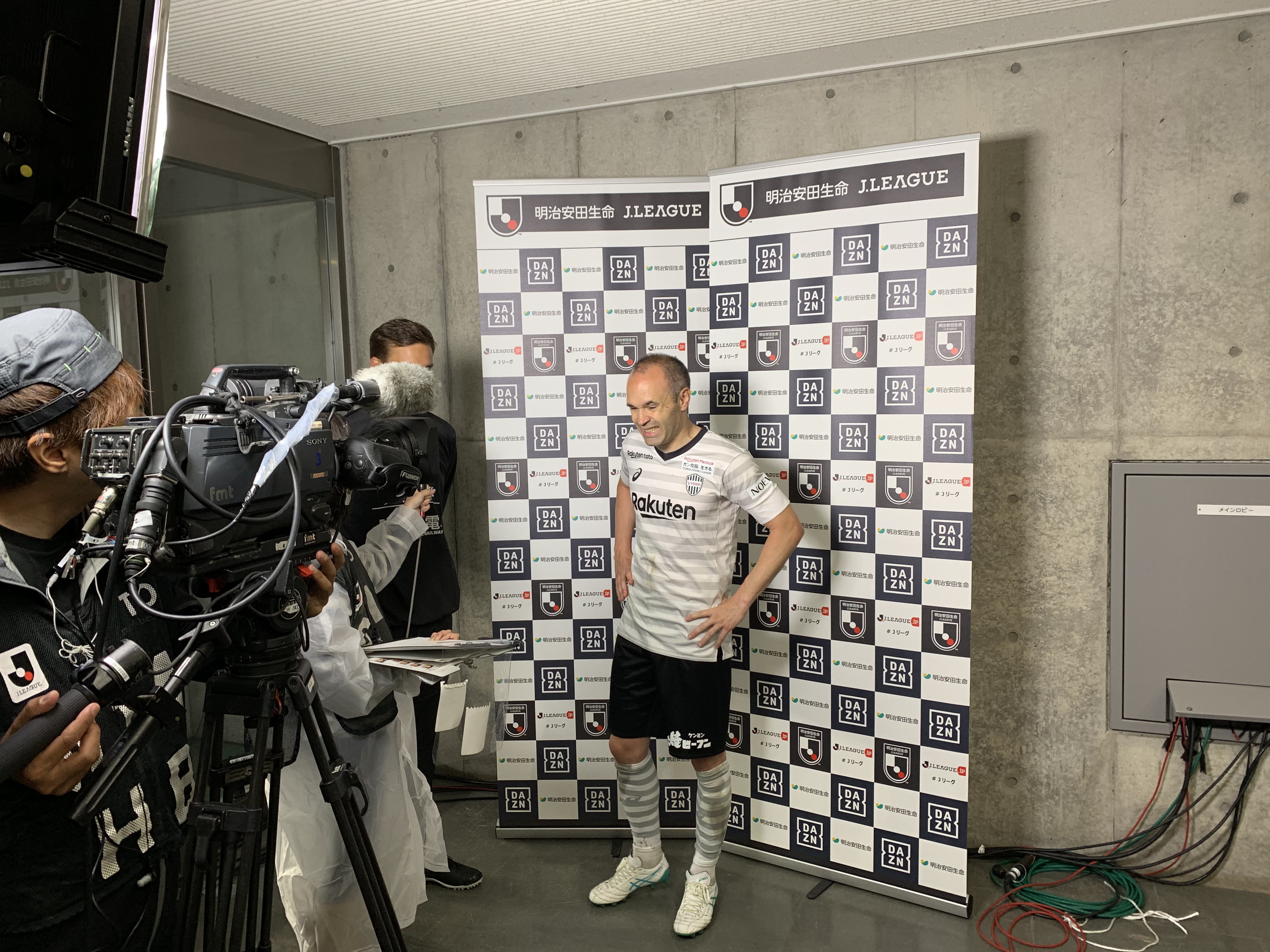 ヒーローインタビューに答えるイニエスタ