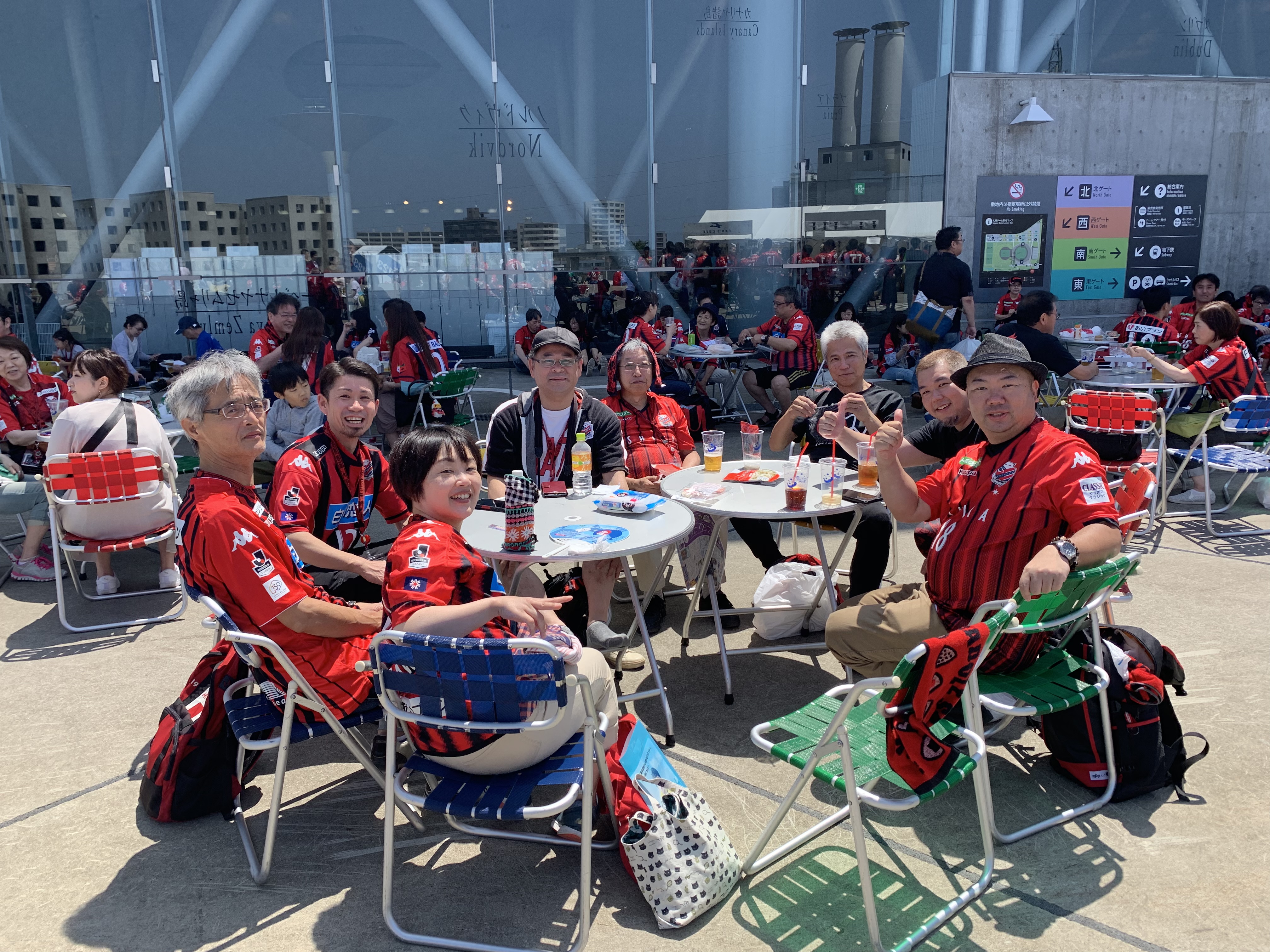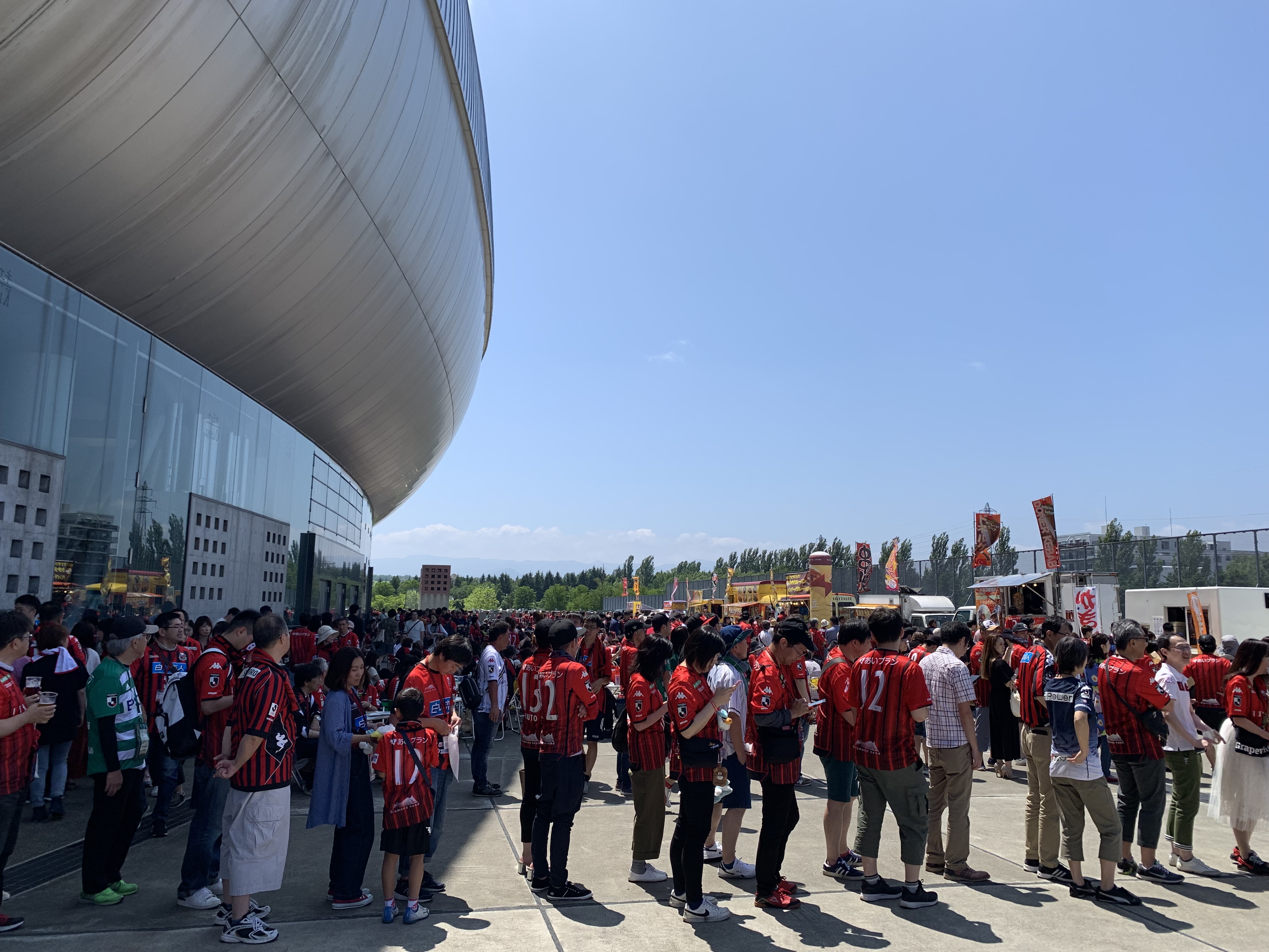 雨の東京から札幌へ向かう。梅雨がない札幌は爽やかな気候だ。最高の天気! サポーターのみなさんは、試合前から楽しんでいる。