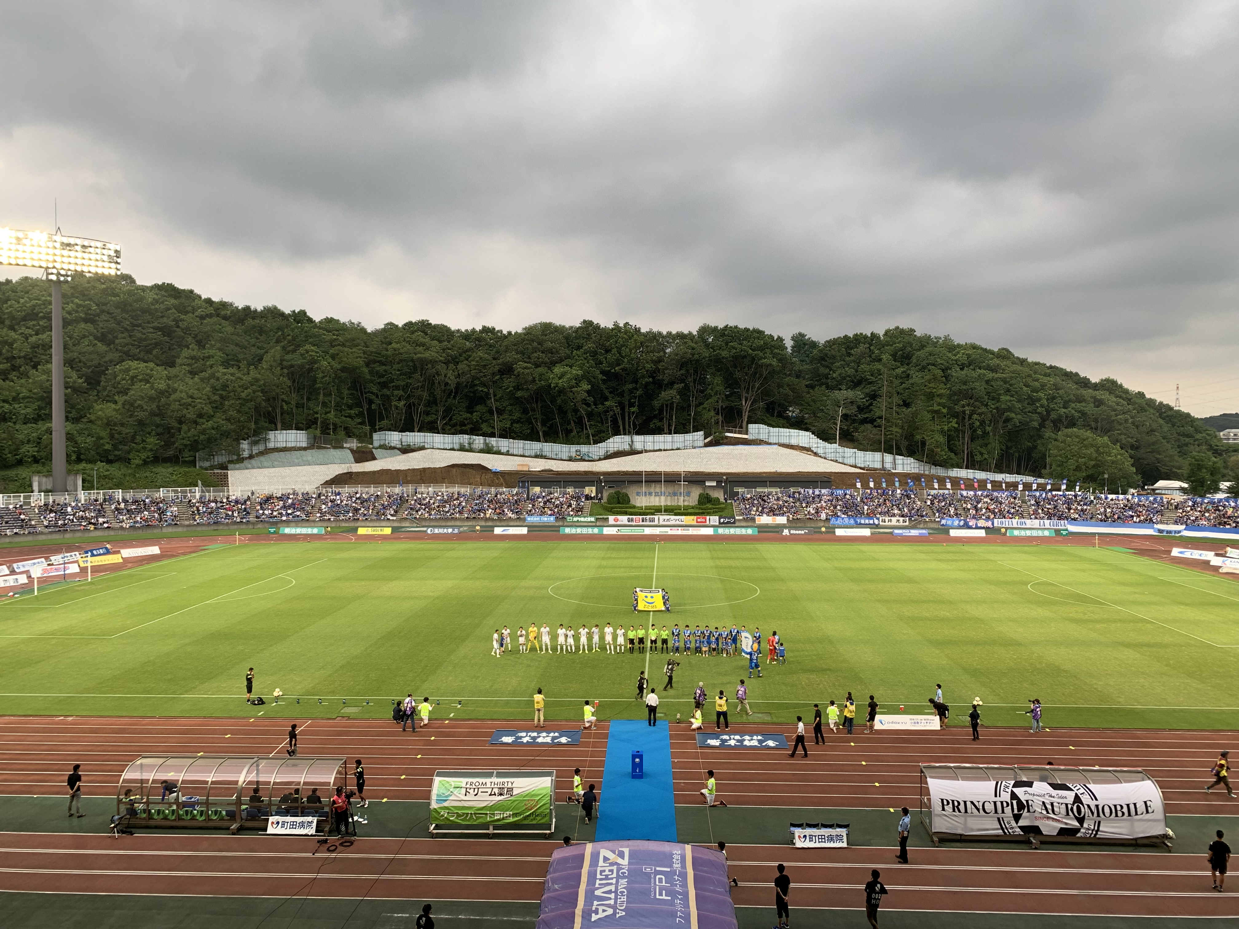 天気もなんとかもちそうだ。3試合ぶりの勝利を目指し、熱気を帯びる町田のサポーター。蒸し暑さのなか、18時3分キックオフ。