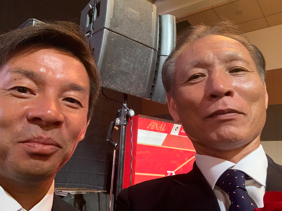 そして、両監督とも記念撮影。鬼木達監督とペトロヴィッチ監督。