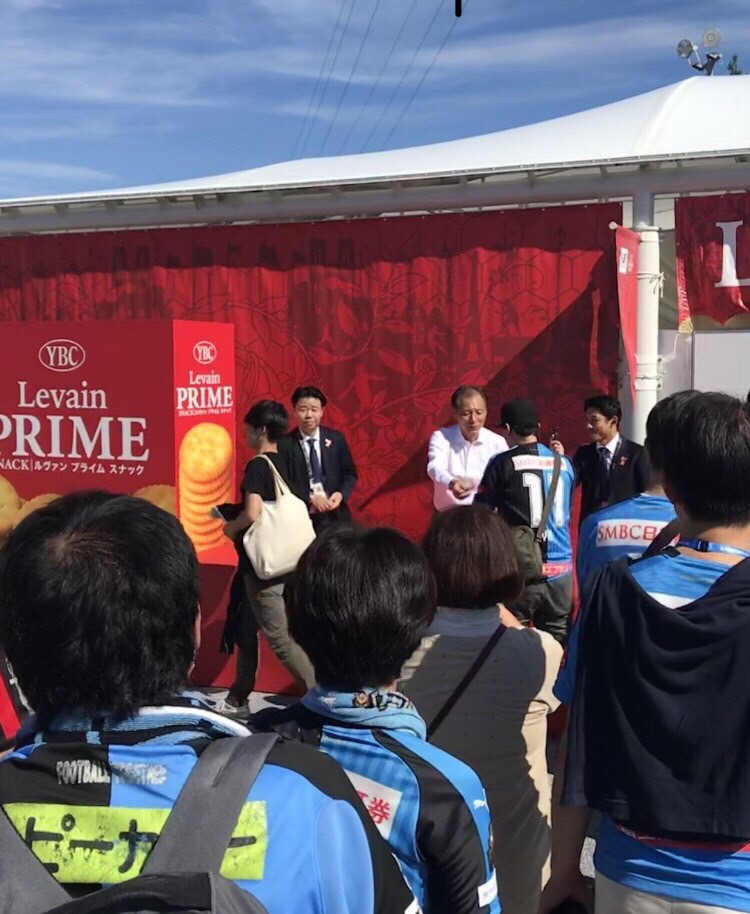 Jリーグキングとも記念撮影。川崎F、札幌サポーターだけではなく、ルヴァンカップ決勝を楽しみにしてくれている他チームのサポーターもたくさん訪れていた。