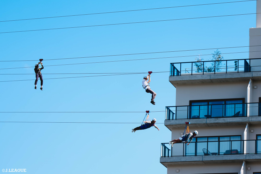 日本初!スタジアム上空を滑走するジップライン