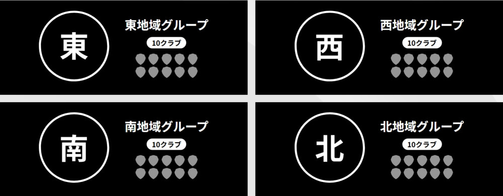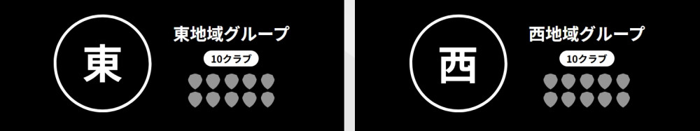 「明治安田J1百年構想リーグ」は東西2グループ、「明治安田J2・J3百年構想リーグ」では東西南北4グループに分かれ実施されます。