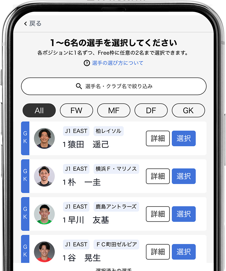 | ポジション枠 | GK、DF、MF、FWから各1名 |