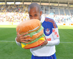 選手関連の写真でアクセス数が多かったのは、第6位に入ったこちらの写真。福岡vs新潟@レベスタの試合で、決勝点をあげWOWプレーヤーズアワードに選ばれたミシェウ選手(新潟)。お茶目に副賞のビッグマッククッションにかぶりつく写真がランクインしました。