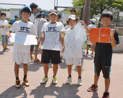 夏休みの終わりにやってきたのは壱岐FCの子どもたち。代表してコメントをしてくれたのは、石蔵大嗣くん、渡辺凌雅くん、田中哲くん、安河内晴陽くんの6年生4人組だ。