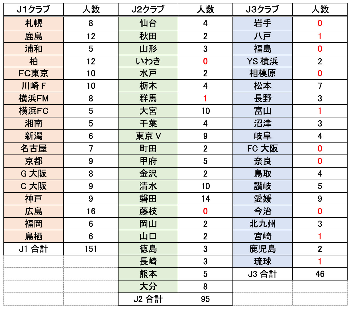 ※ホームグロウン選手は、Jリーグ公式サイトの選手名鑑で「HG」と表記