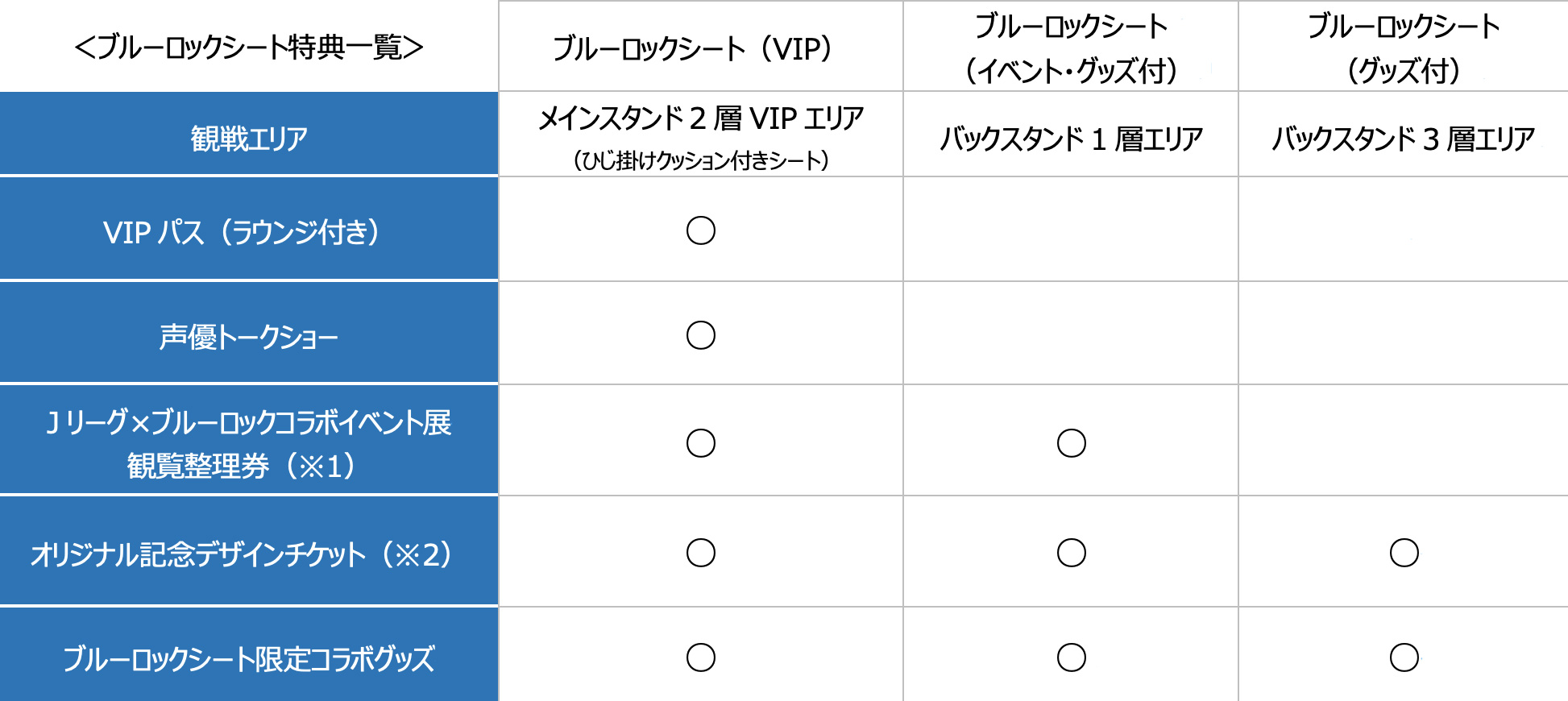※1)ブルーロックシート(VIP)、ブルーロックシート(イベント・グッズ付)を購入頂いた方にはJリーグ×ブルーロックコラボイベント展の「観覧整理券」をお渡しいたします。