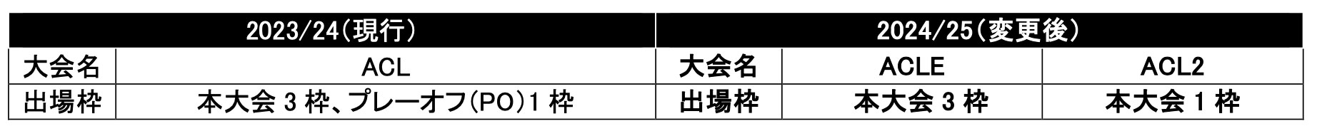 この度、アジアサッカー連盟(AFC)より発表されましたAFCクラブ競技会の大会構造変更に伴い、2024/25シーズンの各大会のJクラブ出場枠が以下のとおりとなりましたので、お知らせいたします。