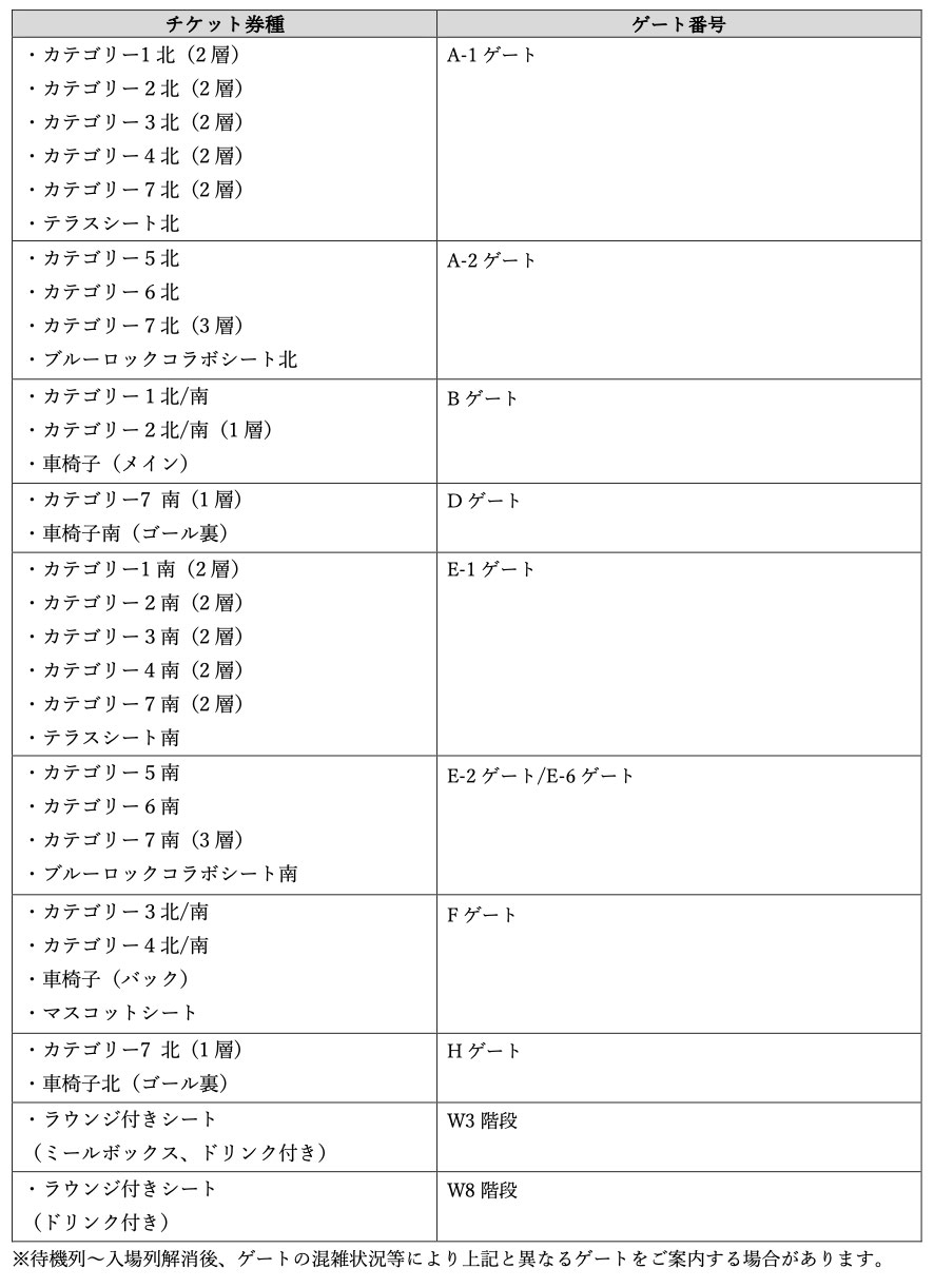 ※そのほかのゲート・チケットにつきましては、入場待機列の作成は行いません。