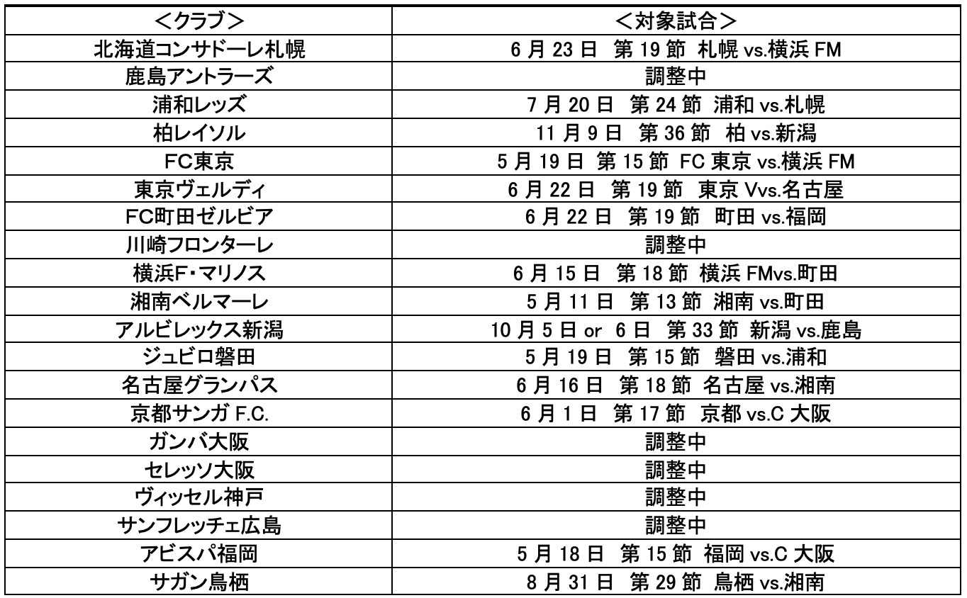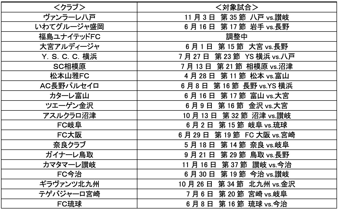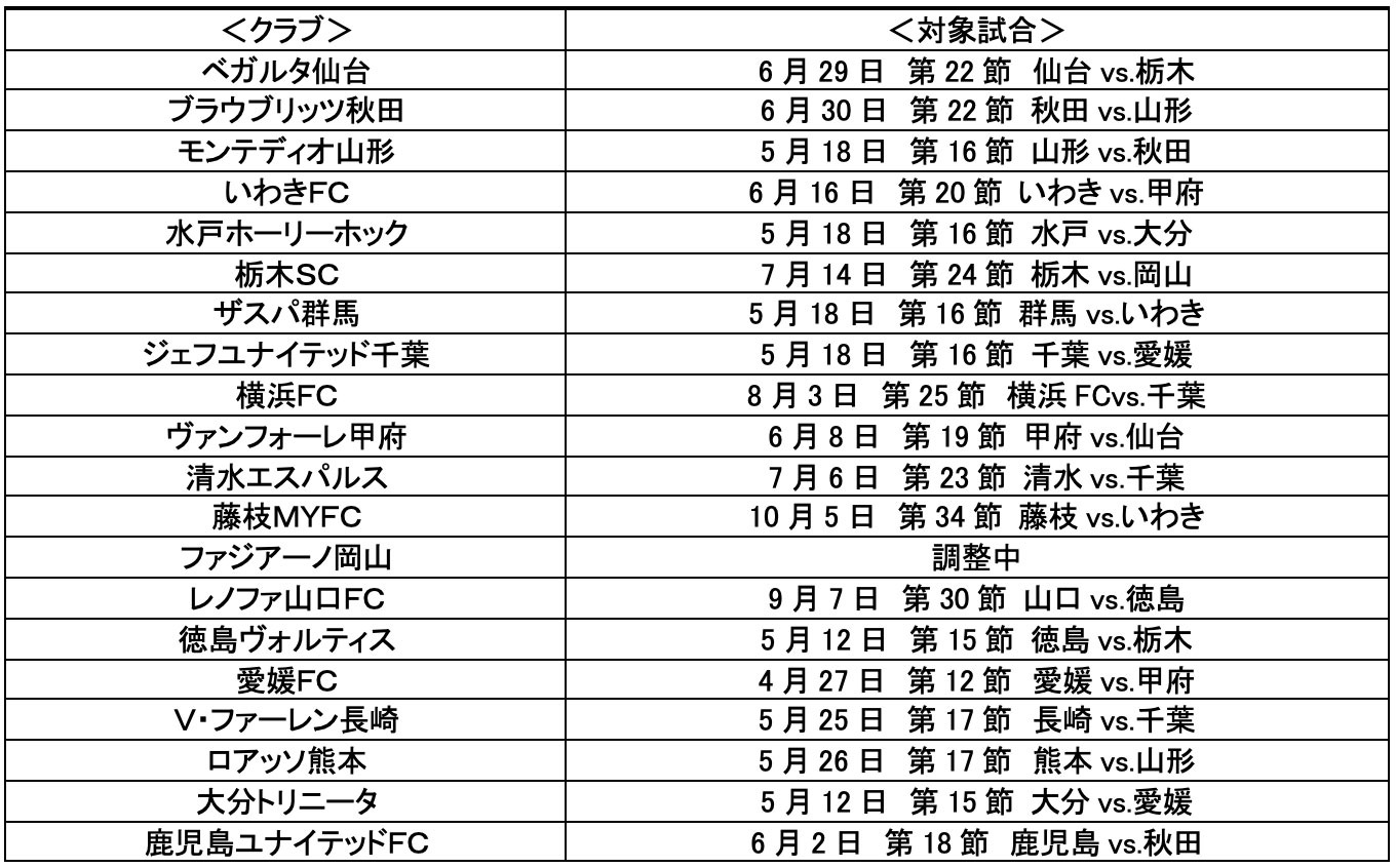 下記対象試合リスト参照※詳細は各クラブホームページを参照