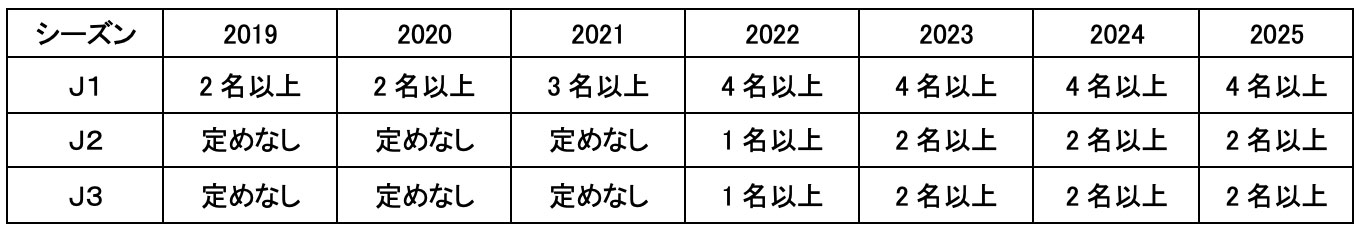 なお、2025シーズンの規程人数は今シーズン同様にJ1:4名、J2:2名、J3:2名となります。