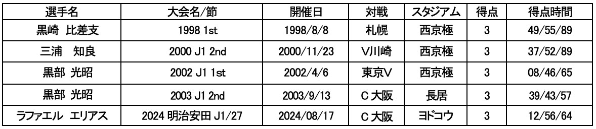 【京都サンガF.C. J1リーグ戦 ハットトリック一覧】