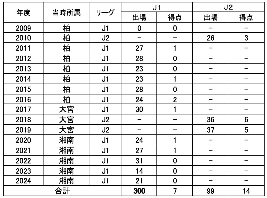 【茨田 陽生 選手 年度別成績】