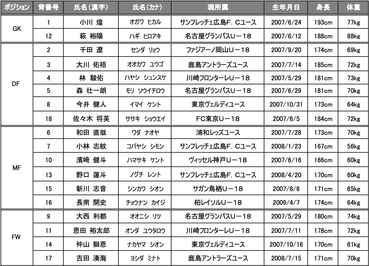 ≪U-18Jリーグ選抜 参加選手・スタッフ一覧≫