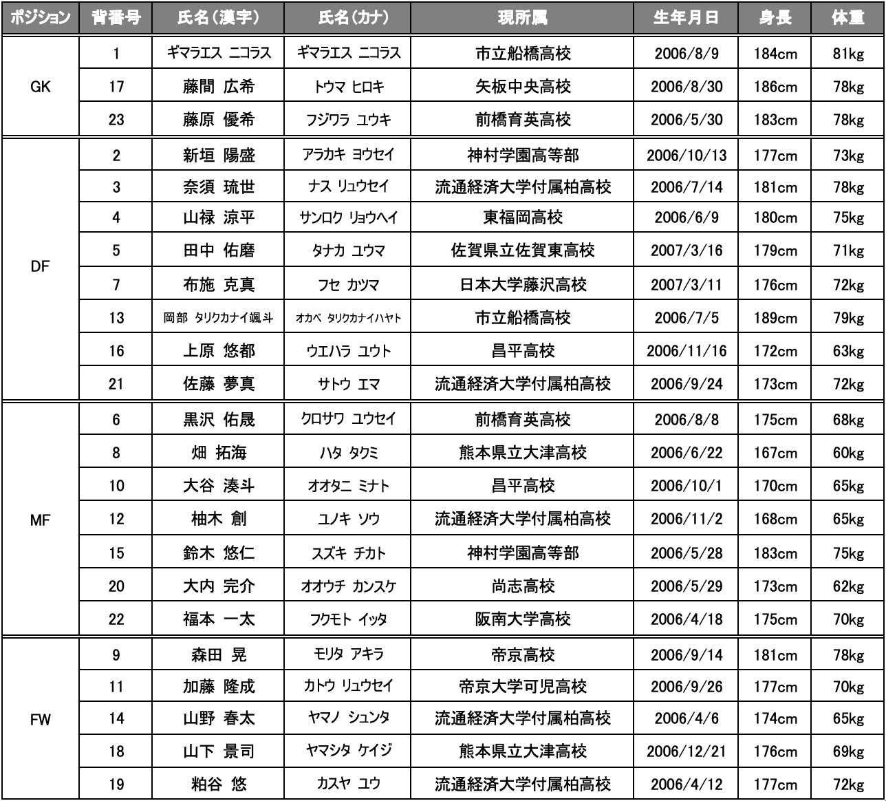≪日本高校サッカー選抜 参加選手・スタッフ一覧≫