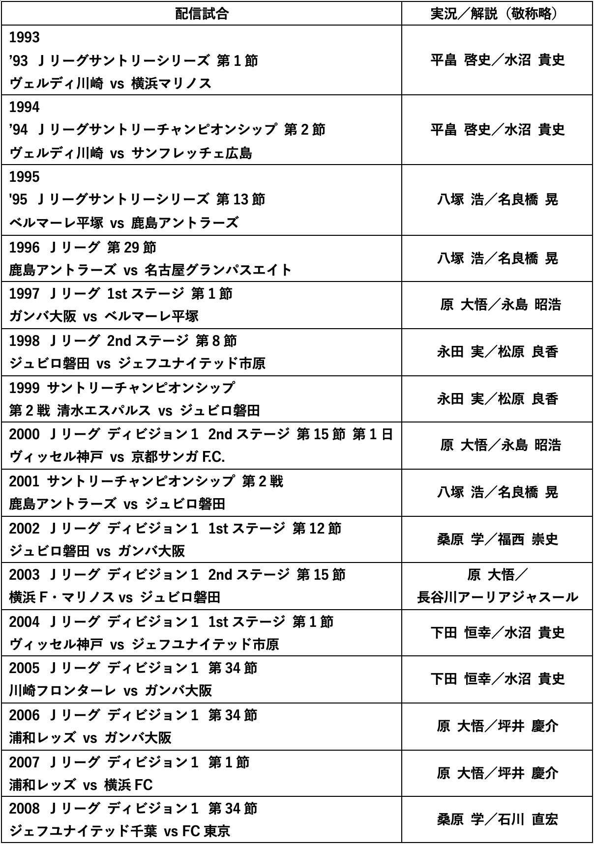 1993シーズンから2024シーズンのリーグ戦のうち、毎シーズン1試合をピックアップして配信します。2016年以前の試合については、実況・解説を再収録してお届けします。