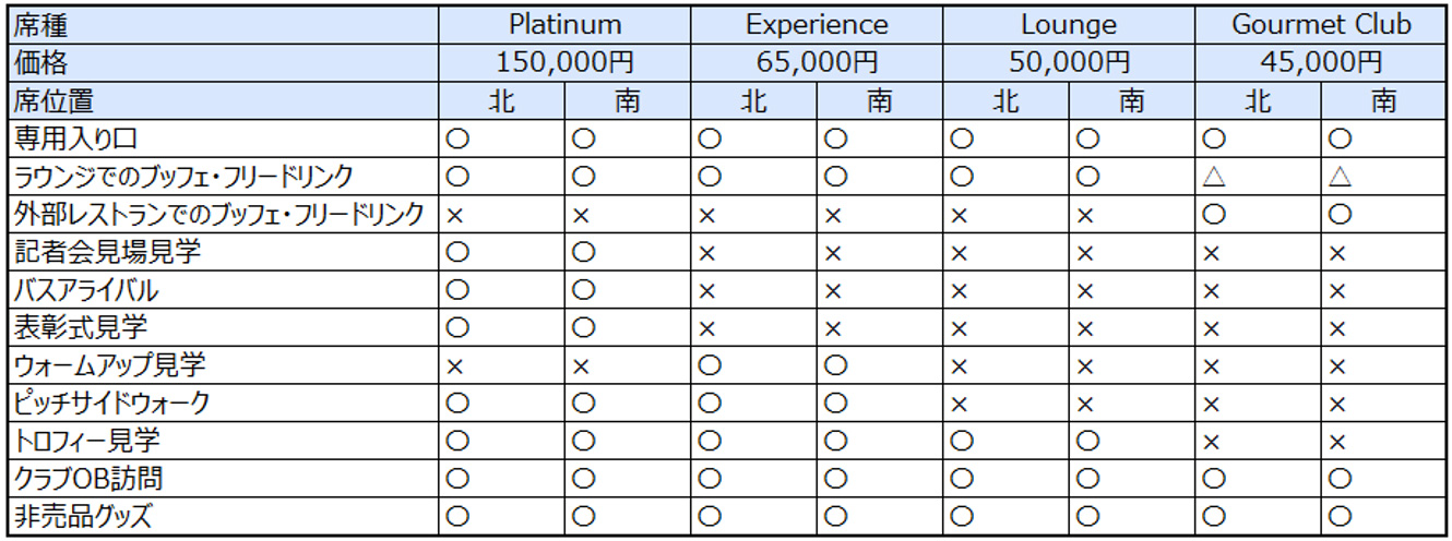 ※ホスピタリティシート以外の席種に関しては決勝進出クラブ確定後にお知らせいたします