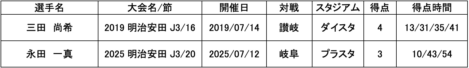 このハットトリックは、J3リーグ戦 今季3回目、通算67回目のハットトリックとなります。