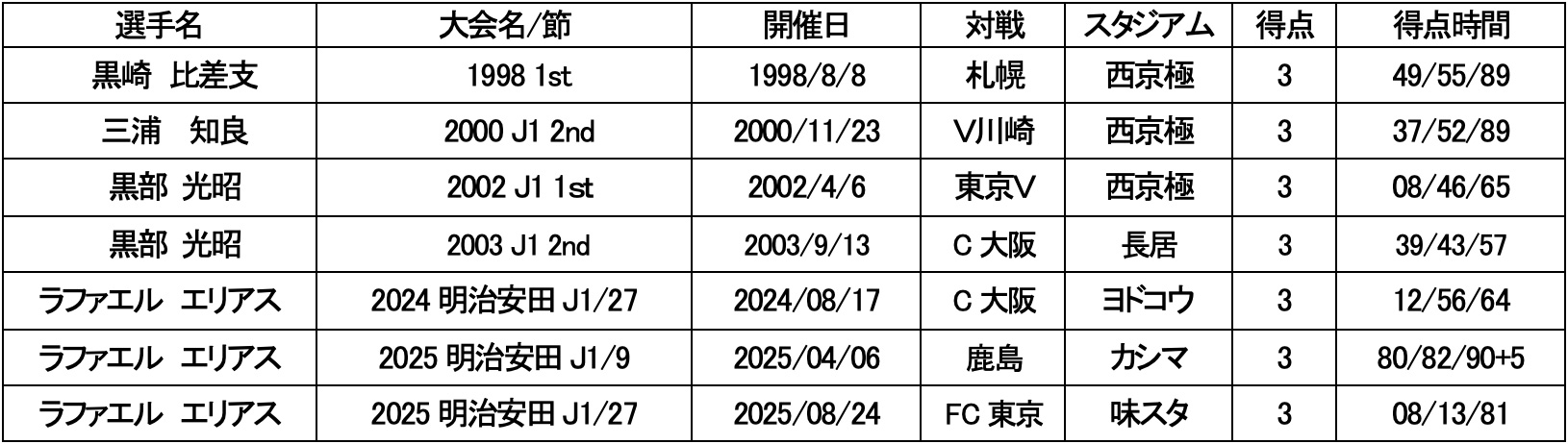 【京都サンガF.C. J1リーグ戦 ハットトリック一覧】