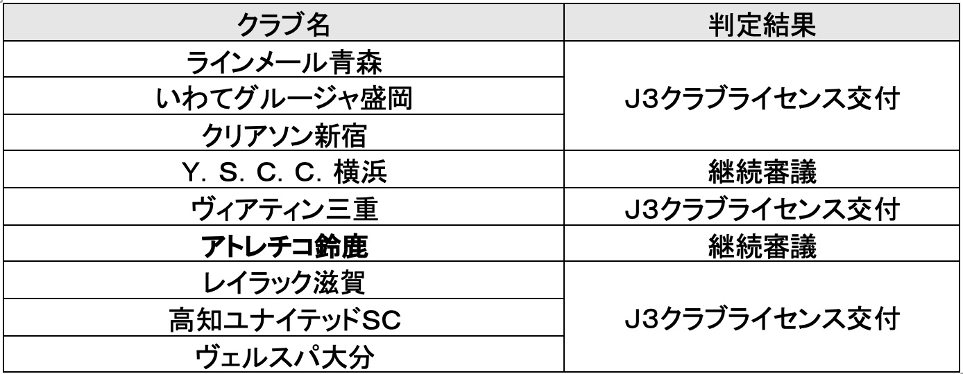 ※高知ユナイテッドSCはFIB(クラブライセンス交付第一審機関)によりJ2クラブライセンス不交付と判断されたため、本審査(J3クラブライセンス)の対象となった。