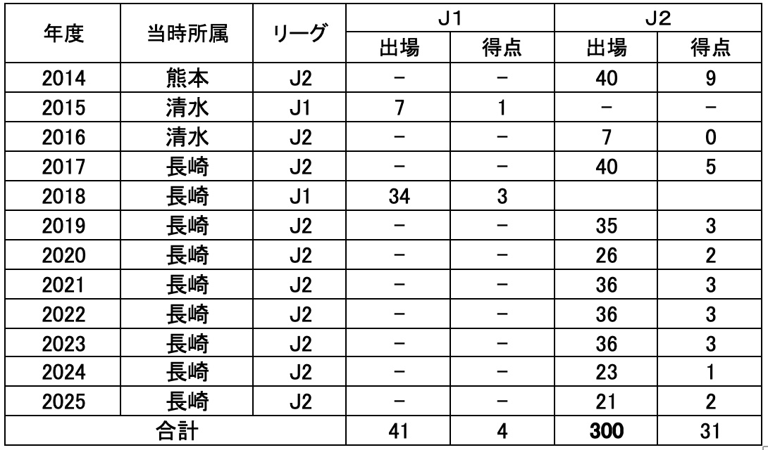 【澤田 崇 選手 年度別成績】