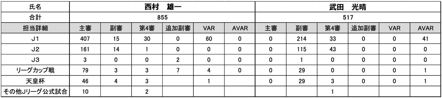 ※出場試合数は、主審/副審/第4審/追加副審/VAR/AVARの合計