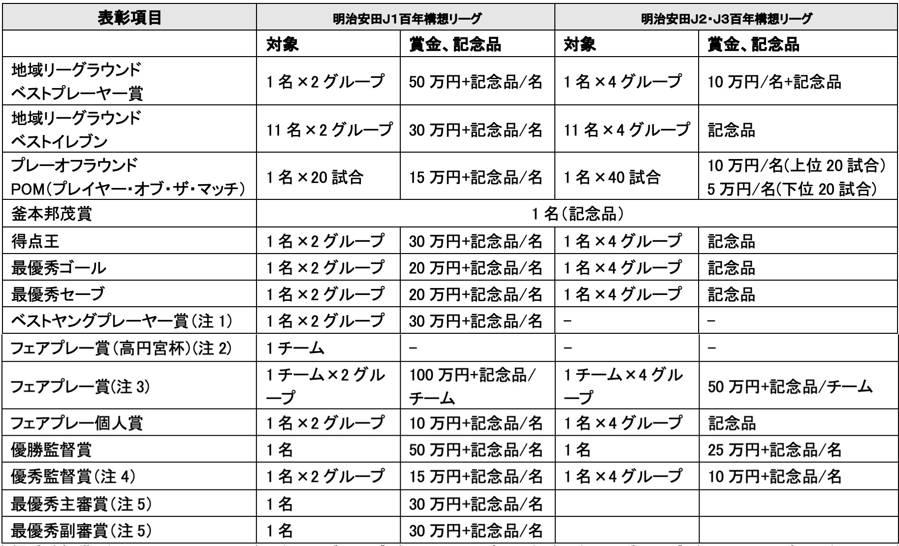 ※釜本邦茂賞は、明治安田J1百年構想リーグと明治安田J2・J3百年構想リーグに分けず、地域リーグラウンドとプレーオフラウンドの合計で最も得点を挙げた選手を受賞対象とする