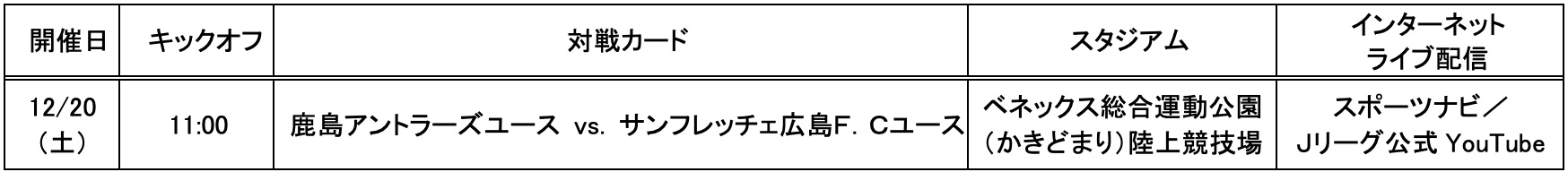 12/20(土) 10:50~ 鹿島アントラーズユース vs. サンフレッチェ広島F.Cユース