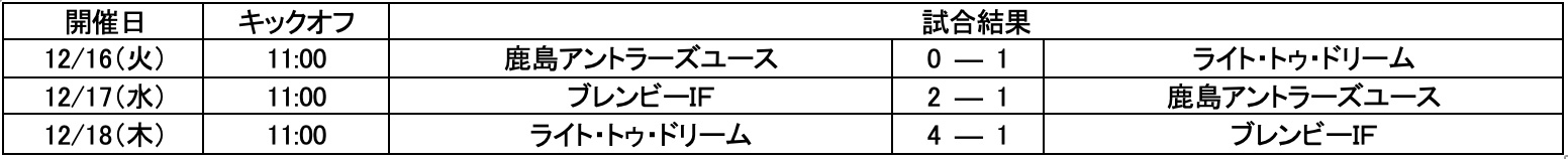 12月16日(火)より開催中の2025 Jリーグインターナショナルユースカップ(以下「本大会」)グループステージ全試合が本日終了し、順位決定戦の対戦カードが決定いたしましたのでお知らせいたします。