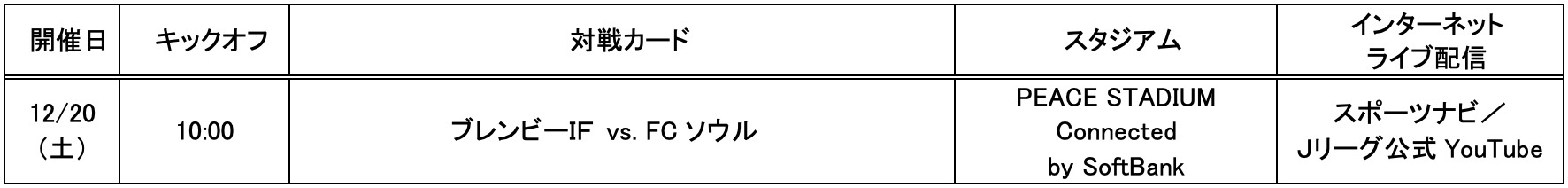 12/20(土)09:50~ ブレンビーIF vs. FCソウル