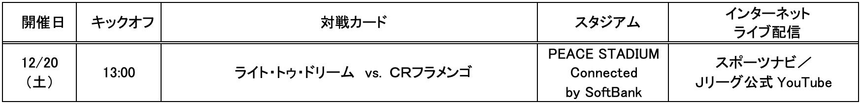 12月20日(土) 12:50~ ライト・トゥ・ドリーム vs. CRフラメンゴ