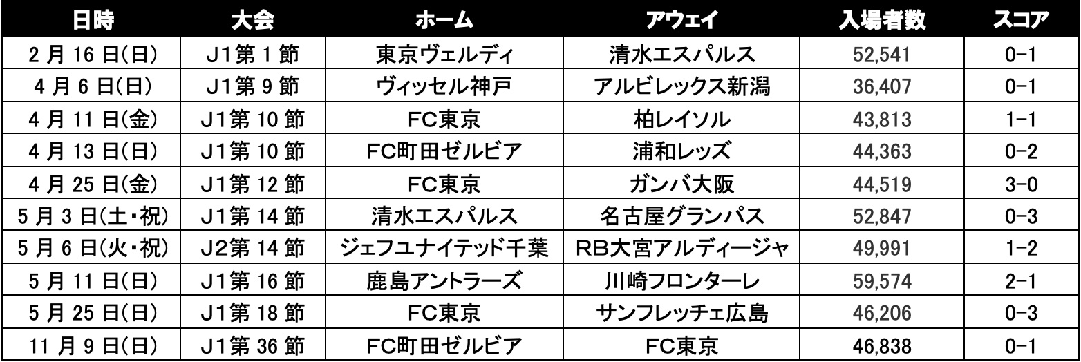 (ご参考)2025シーズン 国立競技場でのJリーグ開催実績(リーグ戦)