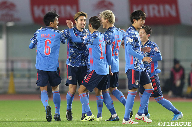 2019/12/29 11:17 国際親善試合 U-22日本vsU-22ジャマイカ 前半5分、FKのチャンスを中山 雄太が見事なキックで直接ゴールに決め、幸先良く先制点を獲得!【国際親善試合 U-22日本vsU-22ジャマイカ】 日本代表 一覧へ