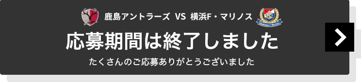 ※本企画にお申し込みいただくと、自動的に鹿島がお気に入り登録に追加され、鹿島からのお知らせを受信します。JリーグIDのお気に入り登録から鹿島を解除する、メール配信許諾を停止すると当落選メールが届きませんので、当落選メール通知まではご注意ください。