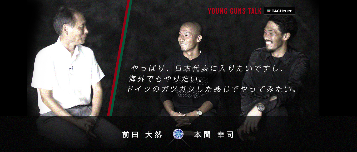 J.LEAGUE.jpが今注目するJリーグ期待の若手選手とそこで長年活躍している先輩選手が、サッカーに対しての互いの想いを語り合うひととき「Young Guns Talk」。今回は水戸ホーリーホックの本間 幸司選手、前田 大然選手にお話しを伺った。聞き手はJリーグ副理事長の原 博実。