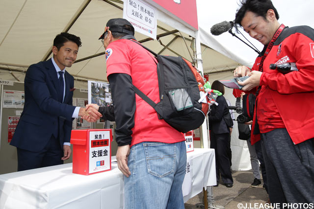 Jリーグは、試合が開催される各スタジアムで「平成28年熊本地震」に対する義援金募金活動及び、インターネットを通じた支援金募金活動を実施しております。みなさまからの貴重なご寄付は、被災された方への支援活動などに活用いたします。温かいご支援をよろしくお願いいたします。