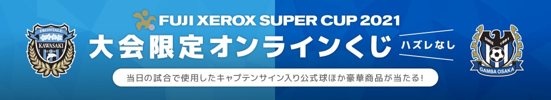 来るFUJI XEROX SUPER CUP 2021の開催を記念して、レアで豪華な景品が当たる、 ハズレ無しの「FUJI XEROX SUPER CUP 2021大会限定 オンラインくじ」を発売いたします。